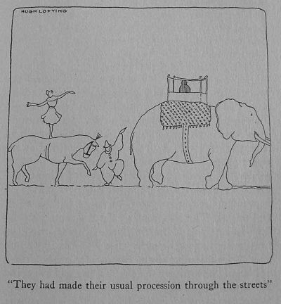 There were no rules, or hardly any. And if little boys wanted to see "behind the scenes," or to go into the elephant's stall and pet him, they were personally conducted wherever they wished to go. This alone gave the circus a quality quite individual. And whenever the wagon-train moved on its way, the children would follow it for miles along the road and for weeks after would talk of nothing but when it would come back again to visit their town. For children everywhere were beginning to regard the Dolittle Circus as something peculiarly their own.