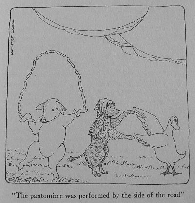 For the same reason, to avoid getting into debt, the Doctor decided not to move back to Manchester, but to keep the show where it was for the present. And with better weather the attendance soon began to be quite considerable. Mr. Bellamy's arrival and his visit to the tradespeople of the town were a good advertisement for the Dolittle Circus. Another advertisement better still was, curiously enough, Blossom's theft and disappearance. No sooner had it become known in Manchester that the ringmaster had run away with a large sum of money than the newspapers took it up and wrote long stories of how the famous Puddleby Pantomime had been robbed and left stranded in a small town twelve miles from the city. The story was reprinted in country papers. And suddenly the people of this same small town woke up to the fact that they had the Puddleby Pantomime in their midst and hadn't noticed it (on account of the rain) till they read of it in the papers.