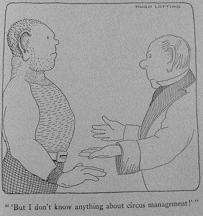 It was, as Jip had said, a good thing that Matthew was there to keep an eye on the Doctor. Otherwise he would most likely have begun by letting his new ideas run away with him. Certainly the average circus-going public had never seen anything like his show before. For one thing, John Dolittle insisted on the strictest politeness from all attendants. For another, he would allow no form of misrepresentation, as he called it. Ordinarily, circus folk had often been accustomed to say that their shows were "the greatest on earth," that their animals were "the only ones in captivity"--or something similarly extravagant and exaggerated.