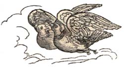 They had a present made them of two young white doves, whose brilliant plumage was set off with a little black collar, elegantly designed by nature. This charming symbol of brotherly love delighted and interested the two children. They were never weary of seeing their tame and playful doves, perch on their heads, arms and shoulders, and take from their hands the nutritive millet-seed; sometimes they even dared to peck it from their innocent lips, then flutter their wings as if to ask a kiss. «Oh! what beautiful birds!» cried Louisa; «I have never seen any thing from which I have derived so[Pg 5] much pleasure.» «They are like ourselves,» said Henry, «inseparable; they think of nothing but loving each other.» «Let us imitate them, my brother, and promise never to leave each other;» «no, sister, never!» and behold our two children embracing, whilst the doves, fluttering around them, appeared to share their joy. Some time passed away, the doves, quite happy, and well tended in the cage they occupied, became more beautiful every day; nothing could equal the whiteness of their plumage, the gracefulness and vivacity of their motions. Often tasting the sweets of liberty, from the indulgence of Louisa and Henry, who almost every moment opened the door of their cage, they availed themselves of it only in[Pg 6] order to caress and thank them for all the happiness they owed them; but too much precaution is often injurious. They vied with each other in opening the bars which enclosed their beloved birds; sometimes they disputed with each other the right of changing the grain that nourished them, and the pure water that quenched their thirst; sometimes their caresses were anxtiously courted; they felt inexpressible delight at seeing them on their shoulders, and feeding them from their hands. Louisa would have it that they preferred her brother to her, Henry maintained that they had more love for his sister. At length, that spur to envy, the fatal desire of possession, which, alas! too often misleads every age, inspired the children[Pg 7] with the idea of having each his own dove.