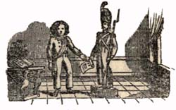 Of all the rich presents that had been made to a young prince, and of the numerous pretty playthings he possessed, nothing pleased him so much as a French grenadier, about three feet and a half high, and which, by the effect of springs in the socle on which it was placed, performed different military exercises, when it was rolled on the floor. He carried and presented arms, stood at ease, and stretched[Pg 96] out his hand, as if he wished to press that of a comrade. The face of this ingenious automaton was martial, and perfectly analogous to the imposing strength and fine proportions of his body; his eyes were dark, and full of fire, overhung with black arched eyebrows; an aquiline nose, expressive lips, covered with thick mustachios, his complexion dark, a sabre wound was on his right cheek, from the ear to the mouth, and on his forehead were two deep scars. In a word, every thing offered the young prince a perfect resemblance of one of those brave grenadiers of the guard whom he loved so much, and whom he was ambitious of leading one day to the field of honour. And, wishing to designate[Pg 97] at once in his grenadier all the qualities of a devoted, courageous, and faithful soldier, he had named him Trocadero. One may easily imagine, how many times in a day, and even in an hour, the young prince, whom we shall call Ferdinand, put this admirable piece of mechanism into motion. Punchinello, Harlequin, the barking dog, the magic lanthorn, and even the elegant carriage with six white horses, were nothing in comparison with Trocadero.