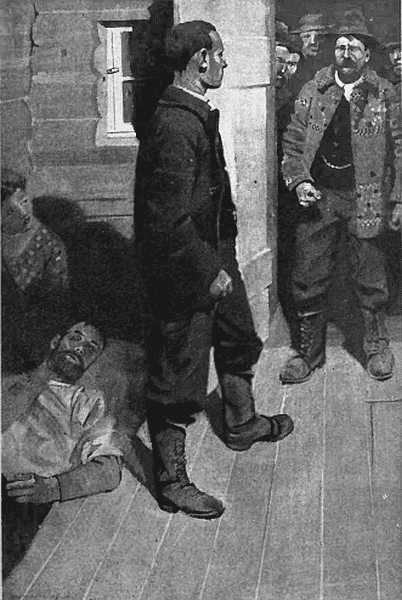 It was an eventful day at Swamp's End—the still and mellow Sunday of John Fairmeadow's first professional appearance. The dog fight served importantly to gather the crowd, of course, and to enlist the hurrying Fairmeadow's attention; but the dog fight was not all. In the early hours of the morning—a warm, flushed dawn—a tote-wagon, drawn by two stolid black beasts, and gravely driven by Plain Tom Hitch, had arrived from the Bottle River camps, bear[Pg 20]ing the mortal remains of Gray Billy Batch, who had departed this life, much to the annoyance of the foreman of the drive, and doubtless to his own surprise and alarm, in the Rattle Water rapids below Big Bend of Bottle River. He had been a scurrilous dog when the breath of life was in him, a sour and unloved wastrel of his days, morose, unkempt, ill-mouthed, in a rage with all the world, save one young heart, and least kind of all to the body they presently fished from the swirl and foam of the eddy below Rattle Water, and to the misled soul that had sped to the solution of its own mystery.
