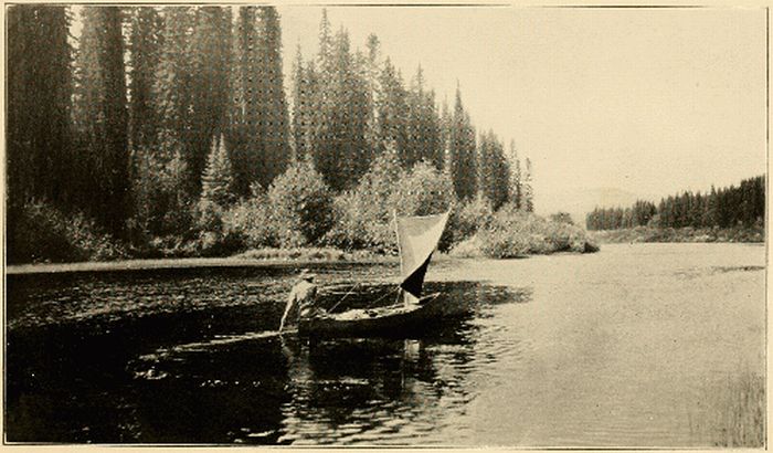 The Lesser Slave, or the "little" river, as it is known hereabouts in contradistinction to the Athabasca, is a jolly little stream. Not since we had left the Crooked River had we enjoyed the same feeling of intimacy with the banks we were passing. For forty-odd miles from the lake it flows with a gentle current back and forth in innumerable hair-pin bends through widespreading meadows of rank grass.