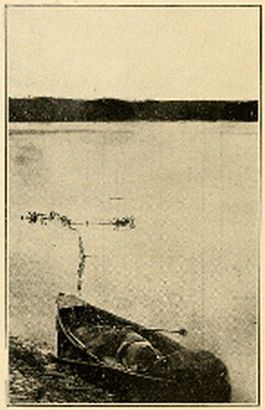 With courteous salutes, they splashed through the creek and on their way, and we re-embarked. It became dark before we got to Big Point and a strong breeze sprang up. The waves were breaking on the stones of the point, and landing promised to be a difficult matter in the dark. But our good friend hailed us cheerily from the shore and made a lighthouse of himself by striking matches to show us the way in.