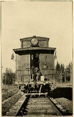 When I was a little boy the great desire of my life was to ride in the "cupalow" of a caboose. It was never gratified until this day. As I climbed up over the lockers, and sat down in the "windsor" chair, which is always up in the lookout, the old feeling came back. This journey had an added advantage in that the train was pointed in the wrong direction, and we traveled toward Edmonton caboose first.