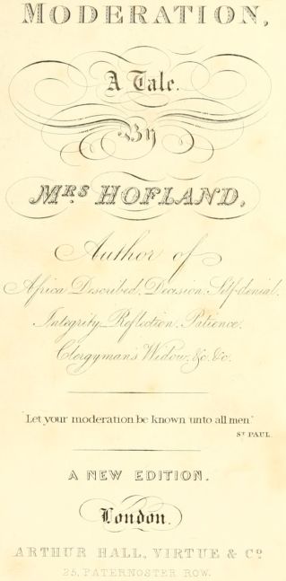 "Very true, and I sincerely hope you will henceforward adopt this system of restraint—I know from experience it will not be a light duty; for the present I shall only add, that as in days past I should have punished the child who stole sugar-plums, by forbidding her my presence for some days, so do I punish the woman who has forfeited my esteem by refusing to hold any communication with her for some years. That this circumstance may not be injurious to you beyond what is intended, and because Harriet was perhaps somewhat injured by an early indulgence in pleasures beyond her sisters, I beg your acceptance of two hundred per annum, which shall be regularly paid by quarterly instalments during my life."