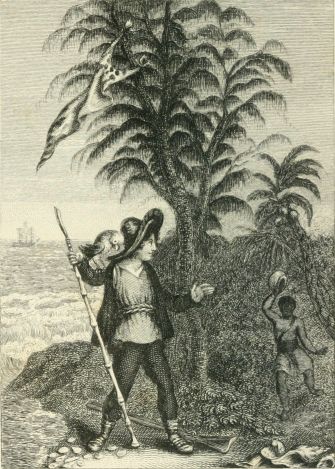 "Because I have just been reading the history of Robinson Crusoe, which was in the packet of books my aunt sent me from England; and I did so very much love him and admire him, that I wished he had been my own great-great-grand-father, or something of that kind. I was, however, afraid it was not so, because I know the Crusoes are a Staffordshire family, and he was a Yorkshireman; and the Crusoes were gentlemen, I suppose, when he was only a poor man."