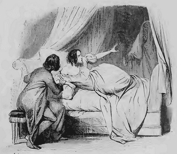 « Vous ne les reverriez pas: ils sont détruits. Ma beauté d'autrefois n'existe plus que dans votre mémoire; ne la chassons pas de ce dernier asile. Vous avez reconnu ma voix, vous ne reconnaîtriez pas mon visage: la lèpre l'a envahi! Don Christoval, je suis une lépreuse! Reculez-vous un peu, de crainte de respirer l'air que je respire; car mon souffle empoisonne et donne la mort!
