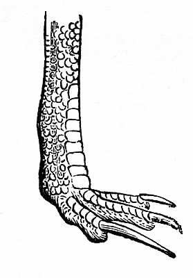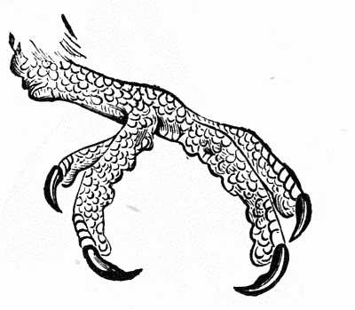 4. And what about hen's teeth? The hen, and all other scratchers, have teeth, but not in the mouth. Their food is swallowed without chewing, and is at once stored in the crop, where, it remains until it is softened. Then it passes into the gizzard, where it is rubbed and ground between tough, hard ribs, like the grooves of a wash-board. To help in this work, the gizzard is filled with sharp stones and bits or gravel which she has swallowed. These are the hen's teeth, and they work quietly, both while she is gathering food and when she is resting or roosting.
