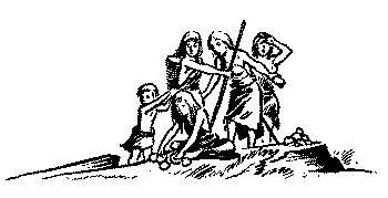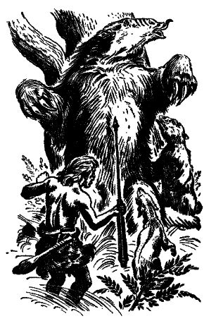 Like all the rest, he was ruled by simple tribal laws and taboos, which were the accumulated wisdom of generations. It was tribal law that Hawk should be Chief Spear-Maker, because he was the most skilled in the methods and rites of spear-making. Similarly, the tribe must have a Chief Fire-Maker who thoroughly understood the magical properties of fire, their greatest protection. Aside from the Chief Fire-Maker and the Chief Spear-Maker, the rest of the men were, most of the time, hunters, for the demand for food was never-ending. And all food, whether meat brought in by the hunters or seeds or berries gathered by the women, must be shared, no matter who had found it. When the tribe was in danger, everyone, women and children included, helped defend it. Most important of all, the tribe must always live and travel as a group; one human alone was at the mercy of wild beasts.