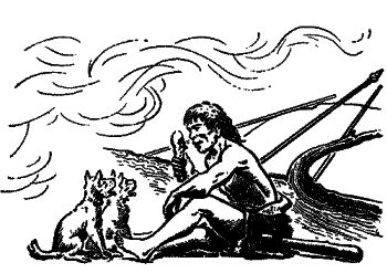Hawk stood outside the cave, the dog beside him and the bow in his hands. The quiver on his shoulder held a dozen feathered arrows which, together, weighed no more than a few darts. It was an easy burden; the loaded quiver seemed feather-light and the bow was no heavier than his throwing-stick.