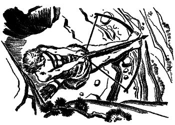 The breaking sinew snapped with a sharp report, and Hawk winced as one end struck him smartly across the cheek. Unmindful of the sinew's sting, he looked in bewilderment at his handiwork. The shaft was powerful enough, but the sinew lacked strength to control it.