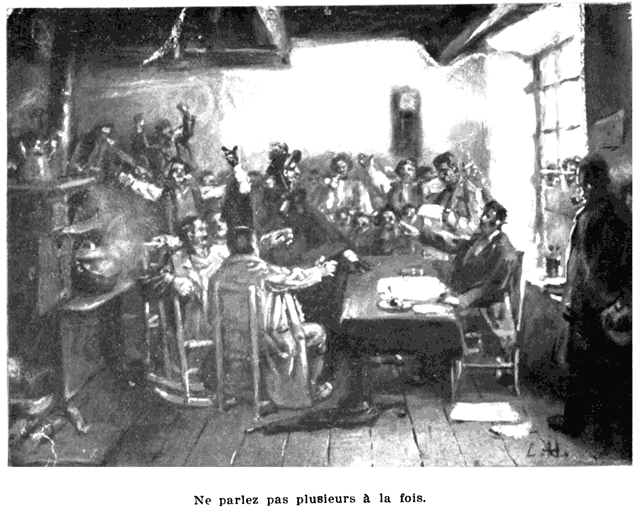 Et, comme je regardais, un peu ahuri, ces enfiévrés travailleurs occupés à fourbir leurs armes et à remplir leurs carquois pour les luttes électorales, j'entendis une voix grave qui disait: