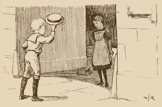 "Master Bob," she said, "run down and ask cook to let you out by the back-door. I think I see the poor flower down there. It must have fallen over."