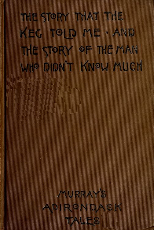 I busied myself for a moment or two in starting my fire, and when the flames of it rose clear and strong I seated myself with my back against a pine, and half reclining gazed off upon the lake. As I thus sat watching the reflection of the fire-light in the water, my eyes fell upon the keg. It seemed, in some sort, a kind of companion to me, alone as I was; a visible bond binding me to my kind; a reminder of the life that men were living in the great, roaring, busy world outside and beyond the lonely lake on whose silent shore I then was lying. It reminded one of life,—or what men call life,—the getting and the giving; the saving and the spending; the loving and the hating; of the thousands far away. I fell again to wondering where it came from, and by whom it was brought over the mountains, and for what purpose; wondering what its history was, and what had become of him who once handled it;—whether he were living or dead, and a hundred other things such as one might fancy in such a spot, in such an hour, looking at such an object so strangely found. It may be I was awake; it may be I was asleep; but as I was thus looking steadily and curiously at it, and wondering strange things about it, it seemed to change its appearance, and become different from a keg; even a MAN; a little man; a very little man,—a man not more than eighteen inches high, with the queerest little legs, and the funniest little body, and the tiniest face one ever saw,—but still a man. And, then, standing bolt upright and looking straight at me with its little gleaming eyes, that glowed like glistening beads, wonder of wonders! it opened its diminutive mouth, and began to talk!