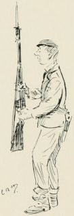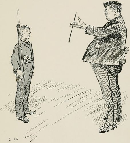 Thought nothing would satisfy our off'cers to-day. We was trying all sorts of things like they does 'em at the war, an' we was fairly sick of it, but the Colonel 'e rides by an' sings out as we was the best company 'e'd seen that morning, so that was all right, an' we didn't mind being shoved about.