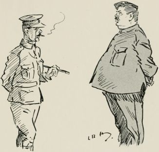 "Intelligence in the obeyin' of commands," said "Tiny," "is of the utmost importance. If you are with an off'cer as knows 'is work you may close yer eyes and rest in peace, an' just do as you're told without worryin'. But they differ. There's that little devil with the eyeglass now, if 'e's takin' you an' you see me convenient to 'is elbow you can be easy in your minds an' jump to the word, but if, by misfortune, 'e's out there alone, keep yer wits about yer an' step off slow, for 'As you were' an' 'Mark time' is favourite commands with 'im.'"