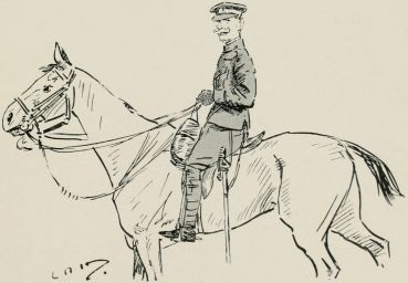 Here comes my noble Captain. He's a bit of a slacker, I fancy. Wish he'd buck the men up more in their drill. They were simply awful yesterday, I thought, but he didn't seem to notice it; in fact, I rather imagined he didn't approve of my goin' for 'em in the way I did. By Jove, if I said "Wake up those men," once, I must have said it a hundred times.