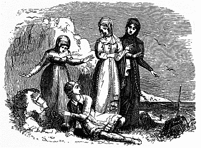 "I am Margaret, your queen," she replied; "I have fled hither with mine only child, Edward, Prince of Wales, from the fatal battle of Northampton. I have been hunted like a partridge upon the mountains, what time I have wandered from place to place, with this precious boy, seek[Pg 355]ing refuge and finding none, till at length our few faithful followers were attacked by robbers, in the marshy glen yonder, and we have fled hither, all desolate and sore afraid, to sue for thy protection."