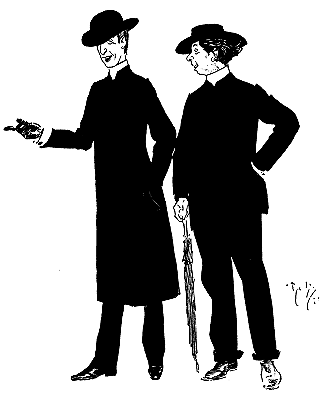 ![]() A FACT Welsh Farmer: ‘Curate, I suppose?’ Dean (who is about to be made Bishop, but who always travels third class): ‘I was once a curate, my friend.’ Welsh Farmer: ‘Drink, I suppose?’ Larger size |