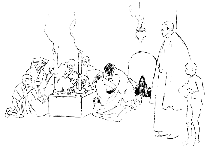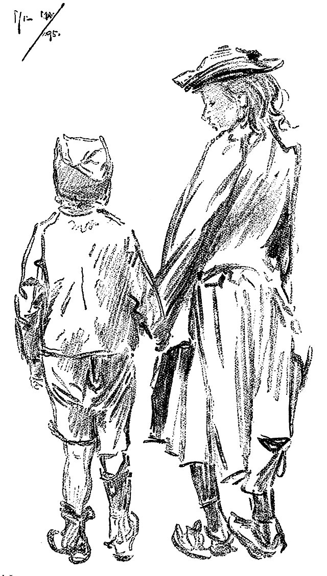 The sad ravages of disease can be estimated from the fact that at his death his weight had been reduced to only five stone. May never ceased to draw as long at his fingers could guide the pencil. A number of sketches, executed on his deathbed, of a model who sat daily in seventeenth-century costume--the absolute last--betray no sign of weakness or failing power. It is remarkable that six of the greatest of English draughtsmen--Randolph Caldecott, A. Boyd Houghton, George J. Pinwell, Frederick Walker, Tom Browne and Phil May--all died before reaching the age of forty. So passed a lovable man and a great artist, ‘a fellow of infinite jest, of most excellent fancy’.