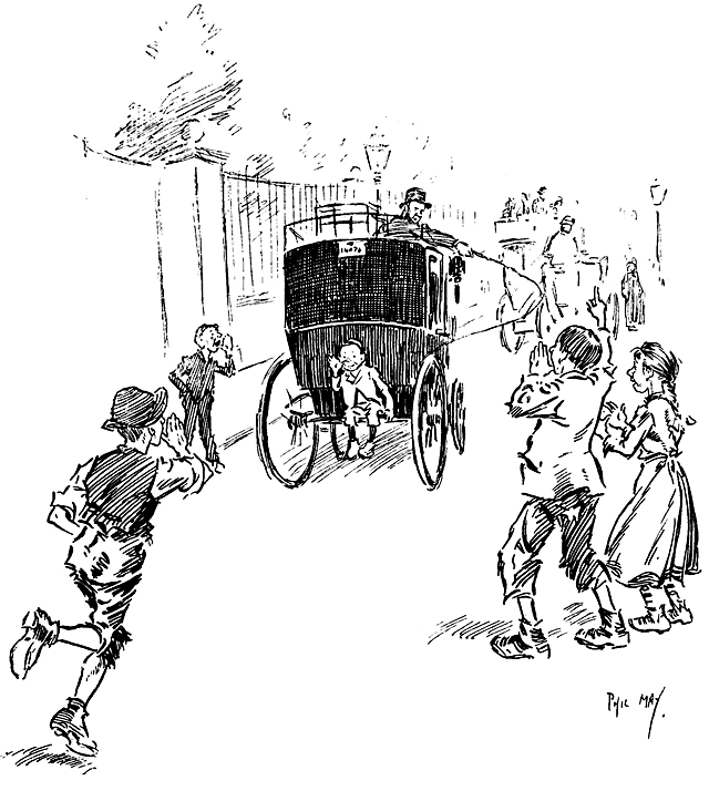 Many of the earlier Punch artists--Doyle, Keene, Leech and Sambourne among them--had been first presented to the public in its own pages. Phil May, with Bernard Partridge and Raven-Hill, belonged to a later generation, who had made their reputation elsewhere before joining the staff. Little or nothing in the way of official recognition came to any of the band, although John Tenniel and, later, Bernard Partridge received the honour of knighthood. In 1896, after the publication of Gutter-snipes, May was elected R.I., the only contemporary black-and-white artist who shared the distinction with him being Hugh Thomson. Lord Leighton, then President, who greatly admired May's work, wished to see him proposed for election as Associate of the Royal Academy; but Leighton's death early in 1896 ended the idea, for no other academician of that time had the temerity to adopt it.