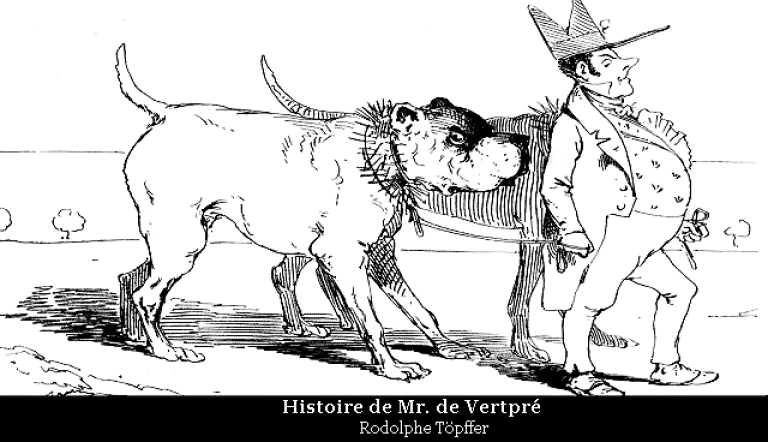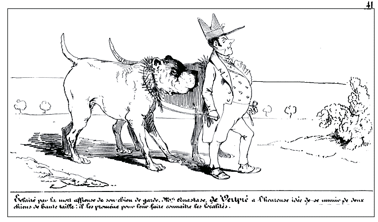 Frappé de cette idée judicieuse, qu'un chien de garde pourrait bien le garantir des voleurs, Mr. Anastase de Vertpré se procure un chien et le promène pour lui faire connaître les localités.