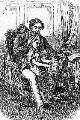 "Nurse, it shall be my own flower," said the little girl; "and I will make a pretty garland of it, to hang over my own dear mamma's picture. Rosette says she will show me how to tie the flowers together; she has made me a pretty wreath for my doll's straw hat, and she means to make her a mat and a carpet too."