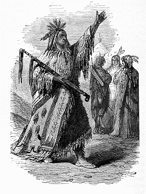 skins of wild animals, or with birch bark. The Indians light a fire of