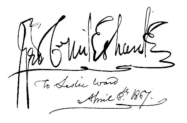 | Wagner.—Richter.—Dan Godfrey.—Arthur Cecil.—Sir Frederick Bridge and bombs.—W. S. Penley.—Sir Herbert Tree.—Max Beerbohm.—Mr. and Mrs. Kendal.—Henry Kemble.—Sir Edgar Boehm.—George Du Maurier.—Rudyard Kipling.—Alfred Austin.—William Black.—Thomas Hardy.—W. E. Henley.—Egerton Castle.—Samuel Smiles.—Farren.—Sir Squire and Lady Bancroft.—Dion Boucicault and his wife.—Sir Charles Wyndham.—Leo Trevor.—Cyril Maude.—William Gillette.—The late Dion Boucicault.—Arthur Bourchier.—Allan Aynesworth.—Charlie Hawtrey.—The Grossmiths.—H. B. Irving.—W. L. Courtney.—Willie Elliot.—"Beau Little."—Henry Arthur Jones.—Gustave Doré.—J. MacNeil Whistler.—Walter Crane.—F. C. G.—Lady Ashburton and her forgetfulness. | 283 |